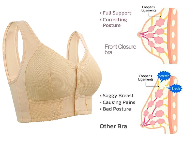 Předpokládá se, že naše podprsenka s přední přezkou tlačí pažní a podprsní tuk zpět do vašich prsou a pomáhá vašim svalům vrátit se do správné polohy pro zeštíhlující efekt. Pomáhá také zlepšit krevní oběh a lymfedém, který je řízen elastickým materiálem podprsenky, může také snížit nabírání tuku a zastavit pokles prsou.